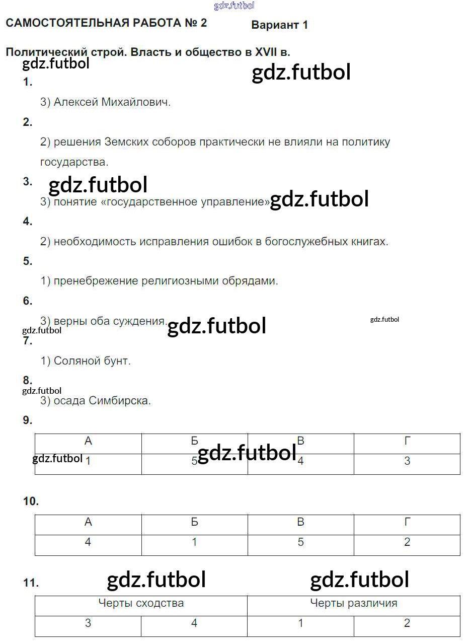 Готовые домашние задания по Истории за 7 класс Акиньшина Рабочая тетрадь 2013 ФГОС - СР-2. Политический строй. Власть и общество в XVII веке Вариант 1