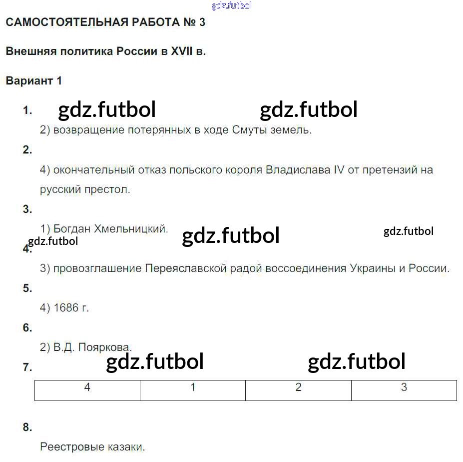 Готовые домашние задания по Истории за 7 класс Акиньшина Рабочая тетрадь 2013 ФГОС - СР-3. Внешняя политика России в XVII веке Вариант 1
