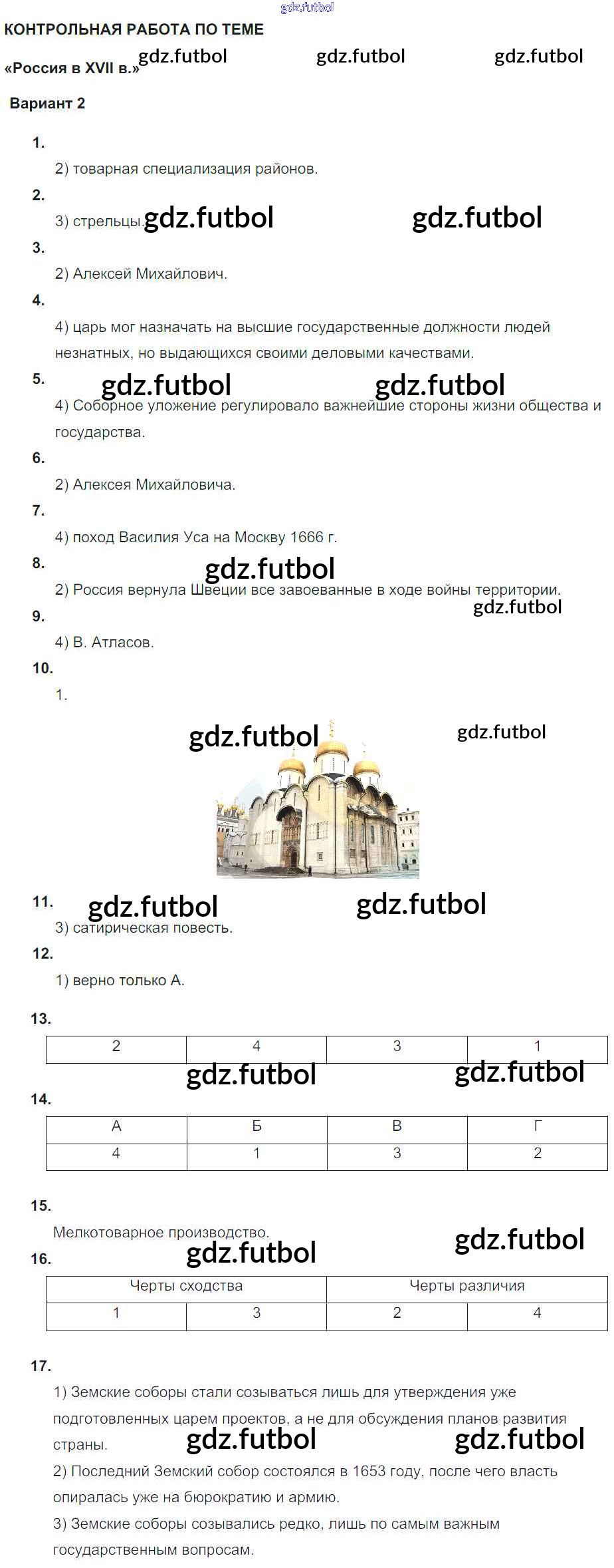 Готовые домашние задания по Истории за 7 класс Акиньшина Рабочая тетрадь 2013 ФГОС - КР. Россия в XVII веке Вариант 2