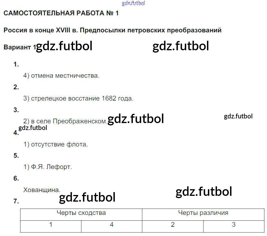 Готовые домашние задания по Истории за 7 класс Акиньшина Рабочая тетрадь 2013 ФГОС - СР-2. Внешняя политика Петра I Вариант 1