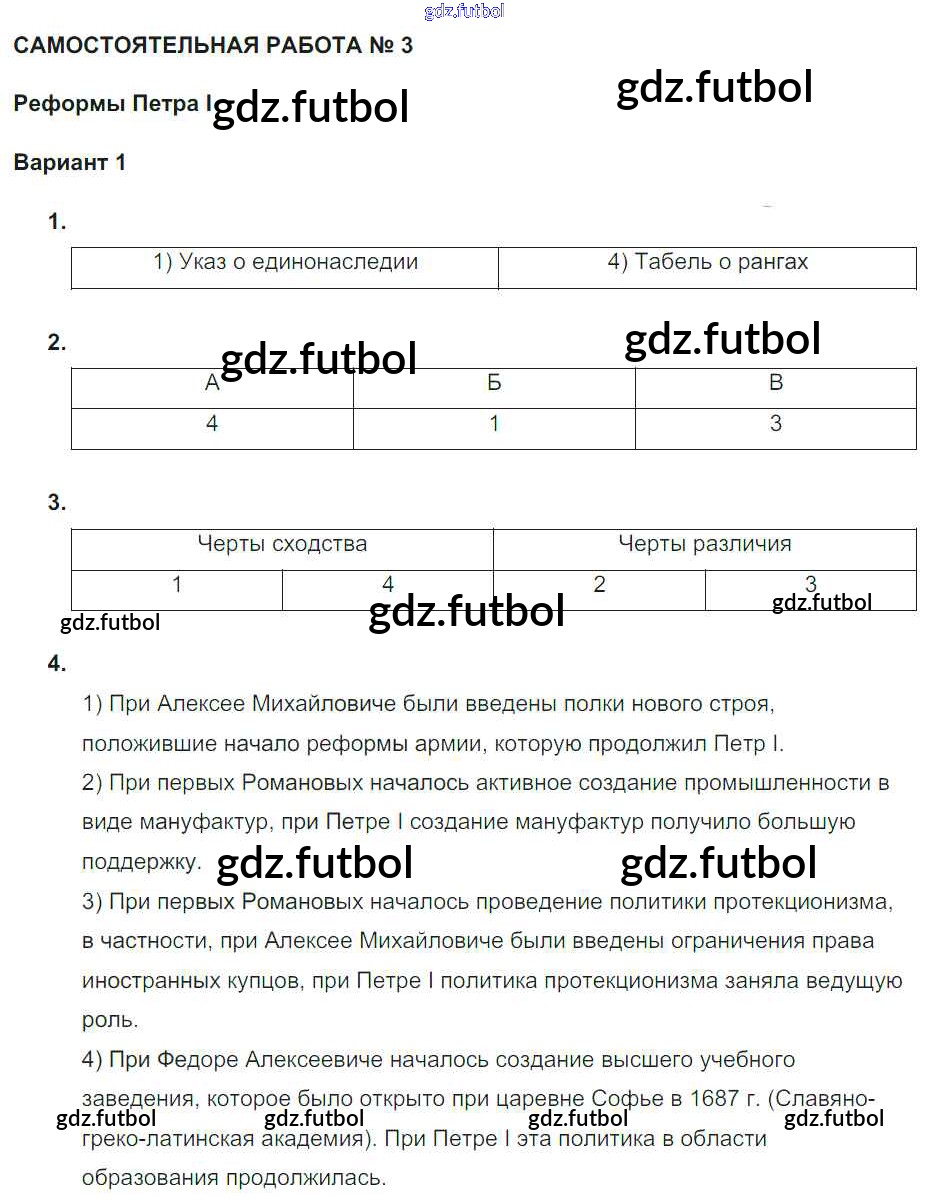 Готовые домашние задания по Истории за 7 класс Акиньшина Рабочая тетрадь 2013 ФГОС - СР-4. Социально-экономическое развитие России в первой четверти XVIII века Вариант 1