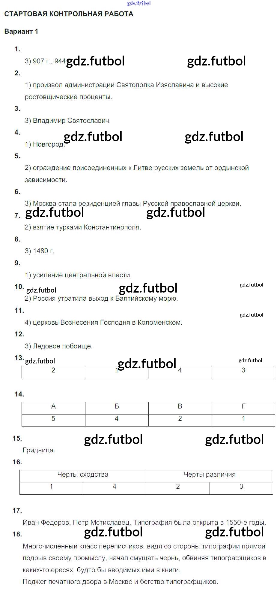 Готовые домашние задания по Истории за 7 класс Акиньшина Рабочая тетрадь 2013 ФГОС - Стартовая контрольная работа Вариант 1