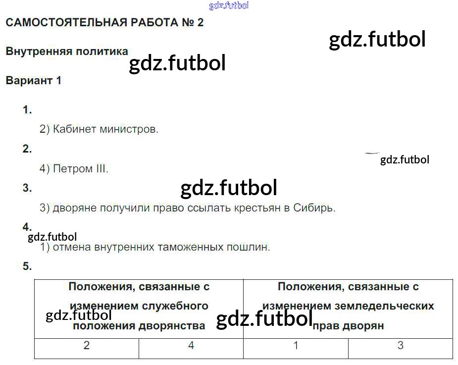 Готовые домашние задания по Истории за 7 класс Акиньшина Рабочая тетрадь 2013 ФГОС - СР-2. Внутренняя политика Вариант 1