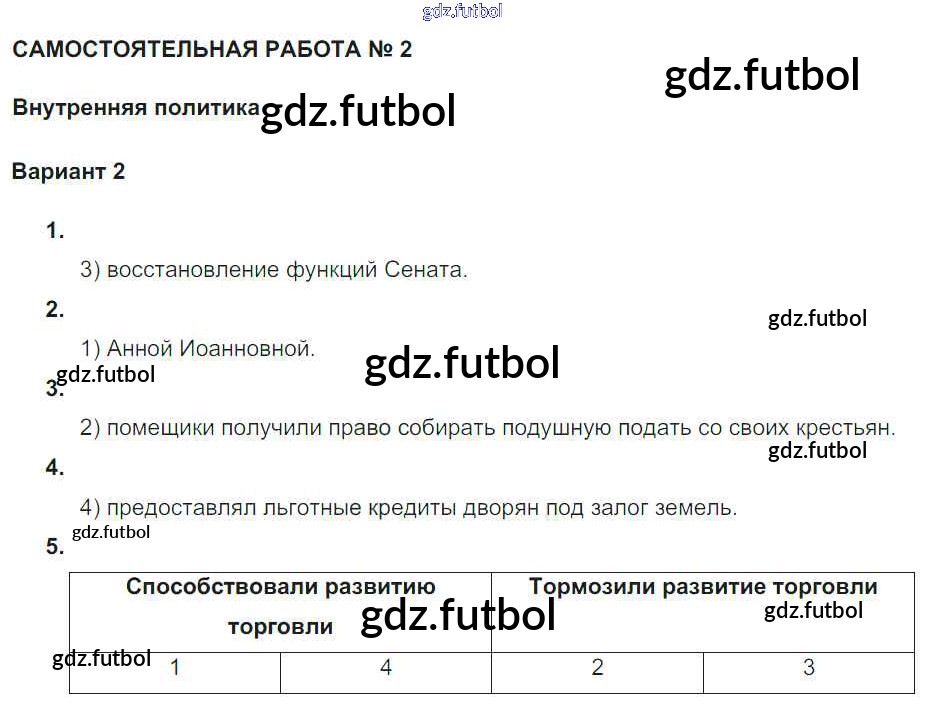 Готовые домашние задания по Истории за 7 класс Акиньшина Рабочая тетрадь 2013 ФГОС - СР-2. Внутренняя политика Вариант 2