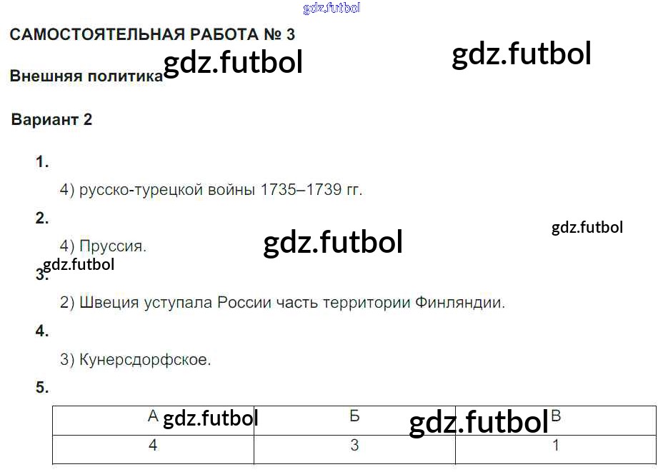 Готовые домашние задания по Истории за 7 класс Акиньшина Рабочая тетрадь 2013 ФГОС - СР-3. Внешняя политика Вариант 2
