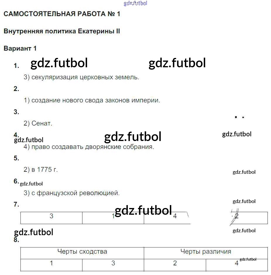 Готовые домашние задания по Истории за 7 класс Акиньшина Рабочая тетрадь 2013 ФГОС - СР-1. Внутренняя политика Екатерины II Вариант 1