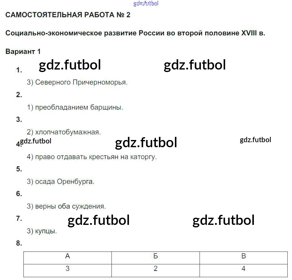 Готовые домашние задания по Истории за 7 класс Акиньшина Рабочая тетрадь 2013 ФГОС - СР-2. Социально-экономическое развитие России во второй половине XVIII века Вариант 1