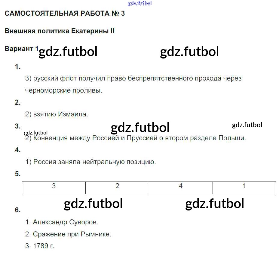 Готовые домашние задания по Истории за 7 класс Акиньшина Рабочая тетрадь 2013 ФГОС - СР-3. Внешняя политика Екатерины II Вариант 1