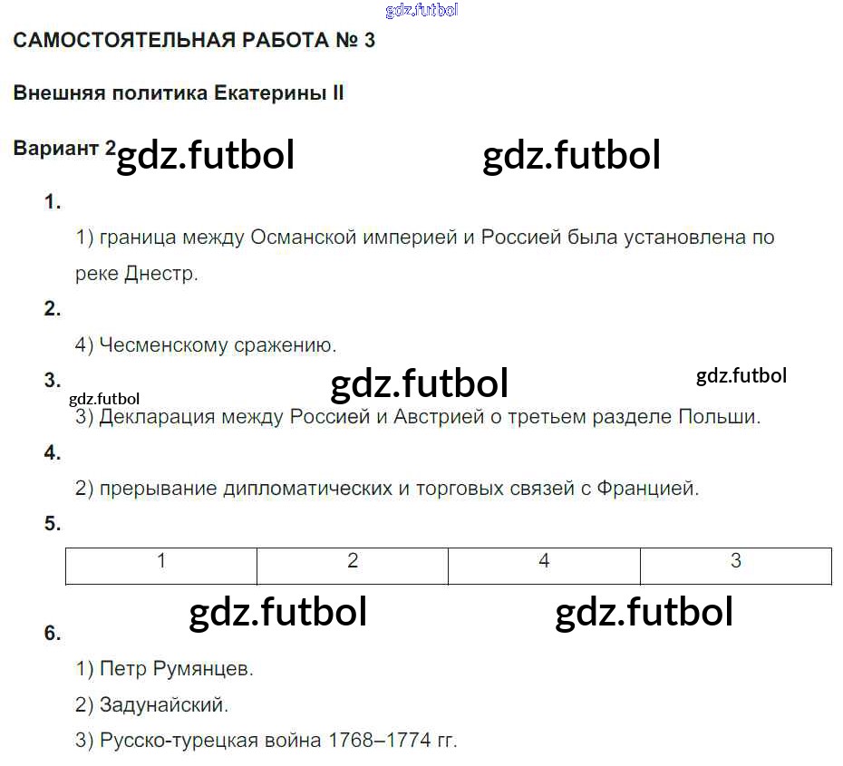 Готовые домашние задания по Истории за 7 класс Акиньшина Рабочая тетрадь 2013 ФГОС - СР-3. Внешняя политика Екатерины II Вариант 2