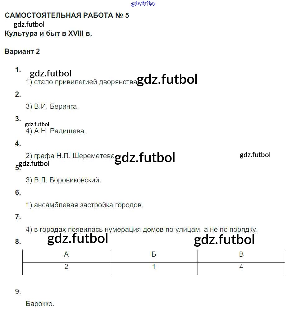 Готовые домашние задания по Истории за 7 класс Акиньшина Рабочая тетрадь 2013 ФГОС - СР-5. Культура и быт в XVIII веке Вариант 2