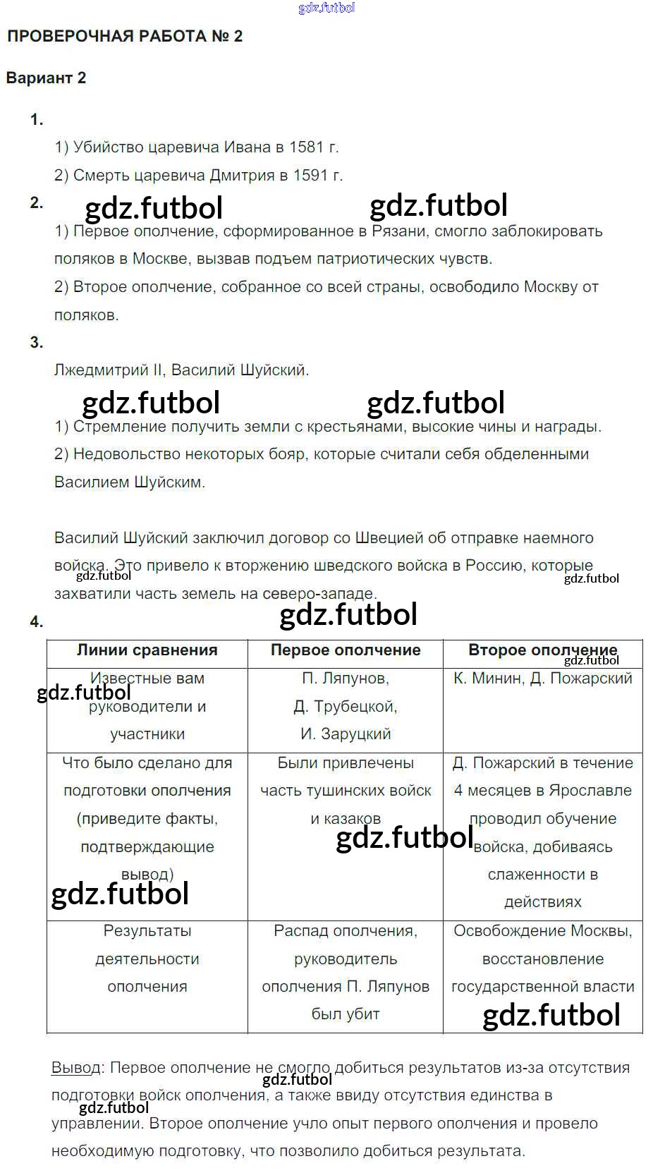 Готовые домашние задания по Истории за 7 класс Артасов Тетрадь-экзаменатор Сферы  2018 ФГОС - Проверочная работа 2 Вариант 2
