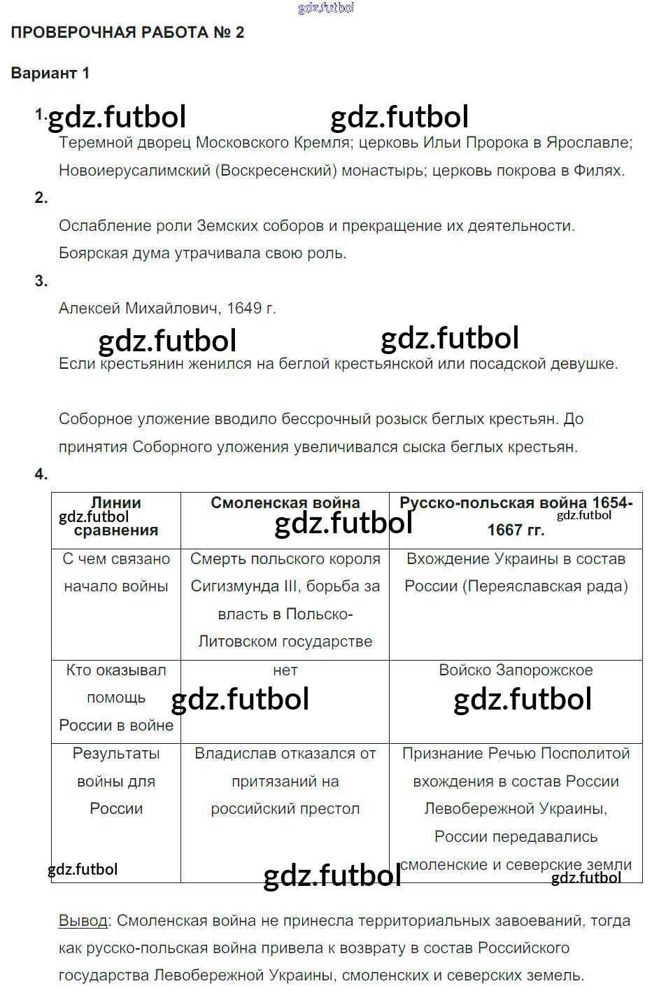 Готовые домашние задания по Истории за 7 класс Артасов Тетрадь-экзаменатор Сферы 2018 ФГОС - Проверочная работа 2 Вариант 1