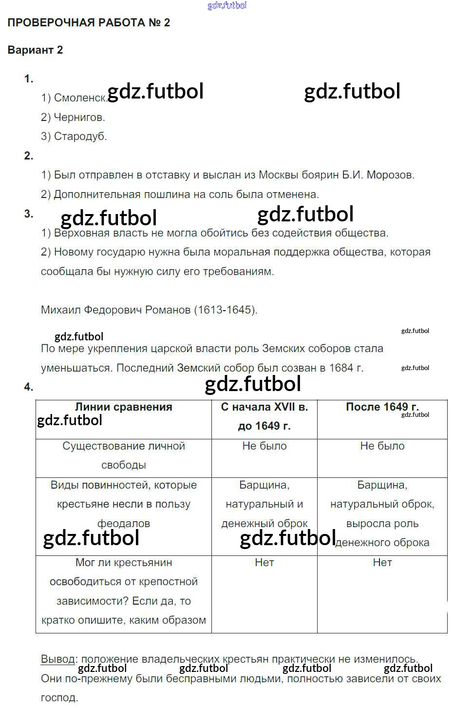 Россия в XVII в. / проверочная работа 2 / вариант 2