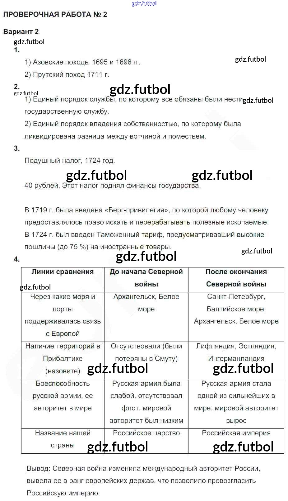 Россия при Петре I / проверочная работа 2 / вариант 2