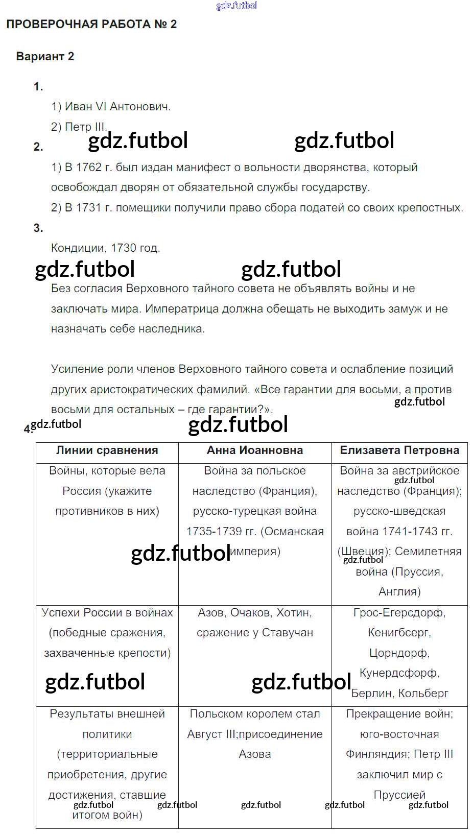 Россия в 1725-1762 гг. / проверочная работа 2 / вариант 2