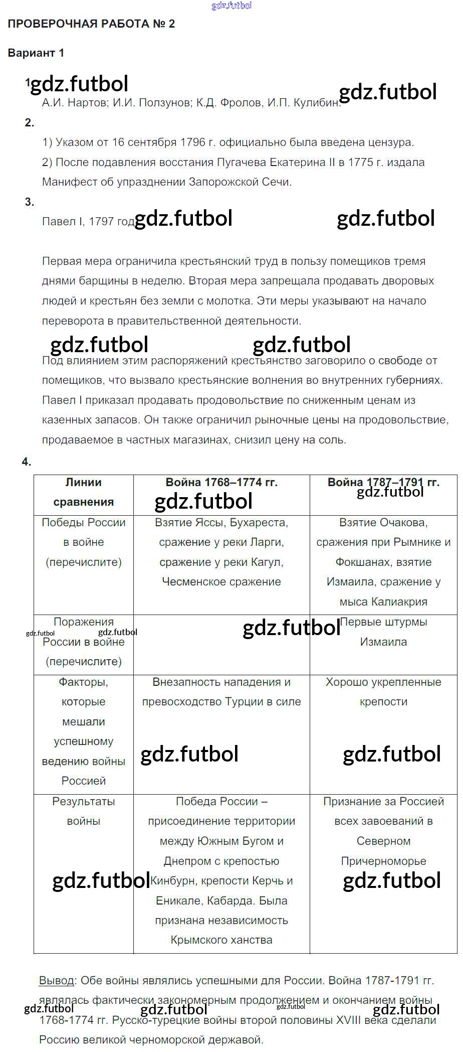 Готовые домашние задания по Истории за 7 класс Артасов Тетрадь-экзаменатор Сферы 2018 ФГОС - Проверочная работа 2 Вариант 1