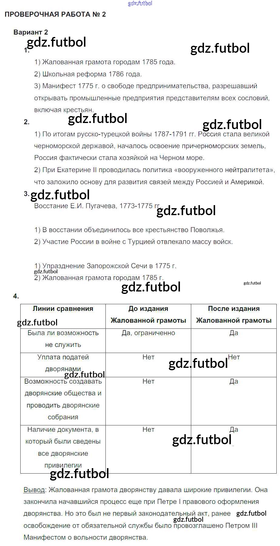 Готовые домашние задания по Истории за 7 класс Артасов Тетрадь-экзаменатор Сферы 2018 ФГОС - Проверочная работа 2 Вариант 2