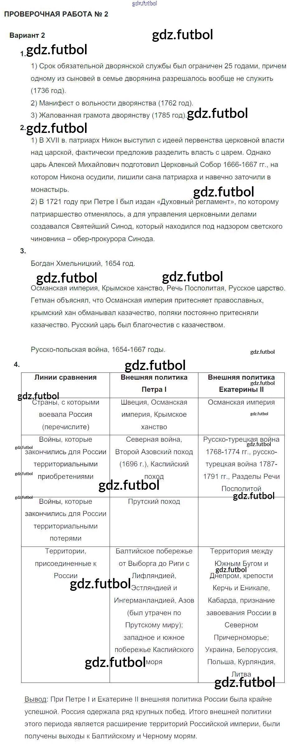 Готовые домашние задания по Истории за 7 класс Артасов Тетрадь-экзаменатор Сферы 2018 ФГОС - Проверочная работа 2 Вариант 2
