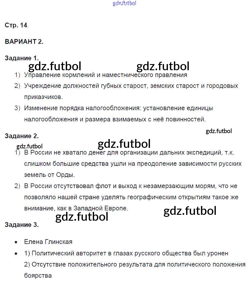 Готовые решения задач (ГДЗ) по Истории седьмой класс Артасов Контрольные работы УМК 2016 ФГОС - Страницы 14 доступны для различных учебных материалов. У нас вы сможете найти авторские решения для всех пособий, предназначенных для школьников. Не секрет, что в настоящее время многие школьники прибегают к использованию готовых решебников, ведь они содержат подробные ответы для каждого упражнения, представленного в учебнике.