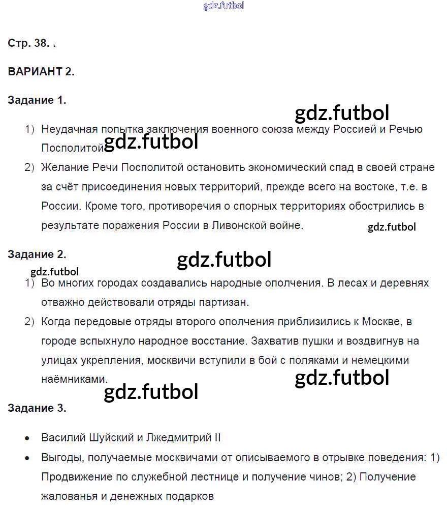 Готовые решения задач (ГДЗ) по Истории седьмой класс Артасов Контрольные работы УМК 2016 ФГОС - Страницы 38 доступны для различных учебных материалов. У нас вы сможете найти авторские решения для всех пособий, предназначенных для школьников. Не секрет, что в настоящее время многие школьники прибегают к использованию готовых решебников, ведь они содержат подробные ответы для каждого упражнения, представленного в учебнике.