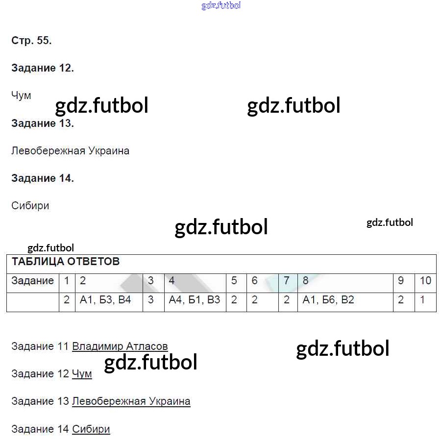 Готовые решения задач (ГДЗ) по Истории седьмой класс Артасов Контрольные работы УМК 2016 ФГОС - Страницы 55 доступны для различных учебных материалов. У нас вы сможете найти авторские решения для всех пособий, предназначенных для школьников. Не секрет, что в настоящее время многие школьники прибегают к использованию готовых решебников, ведь они содержат подробные ответы для каждого упражнения, представленного в учебнике.