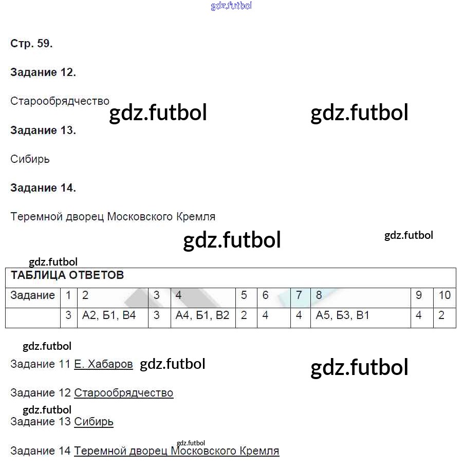 Готовые решения задач (ГДЗ) по Истории седьмой класс Артасов Контрольные работы УМК 2016 ФГОС - Страницы 59 доступны для различных учебных материалов. У нас вы сможете найти авторские решения для всех пособий, предназначенных для школьников. Не секрет, что в настоящее время многие школьники прибегают к использованию готовых решебников, ведь они содержат подробные ответы для каждого упражнения, представленного в учебнике.