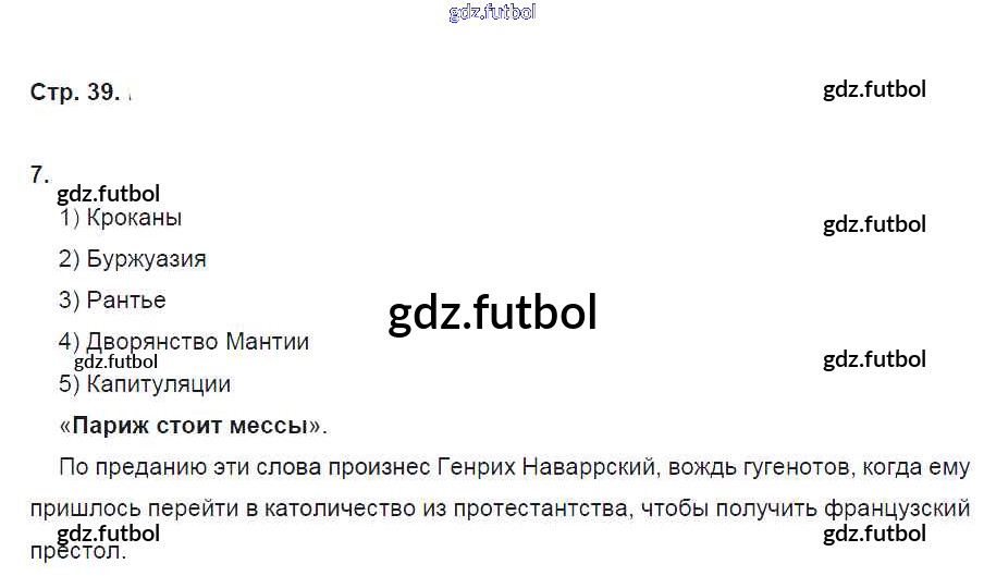 Готовые домашние задания по Истории за 7 класс Баранов Рабочая тетрадь Алгоритм успеха 2015 ФГОС - Страницы 39