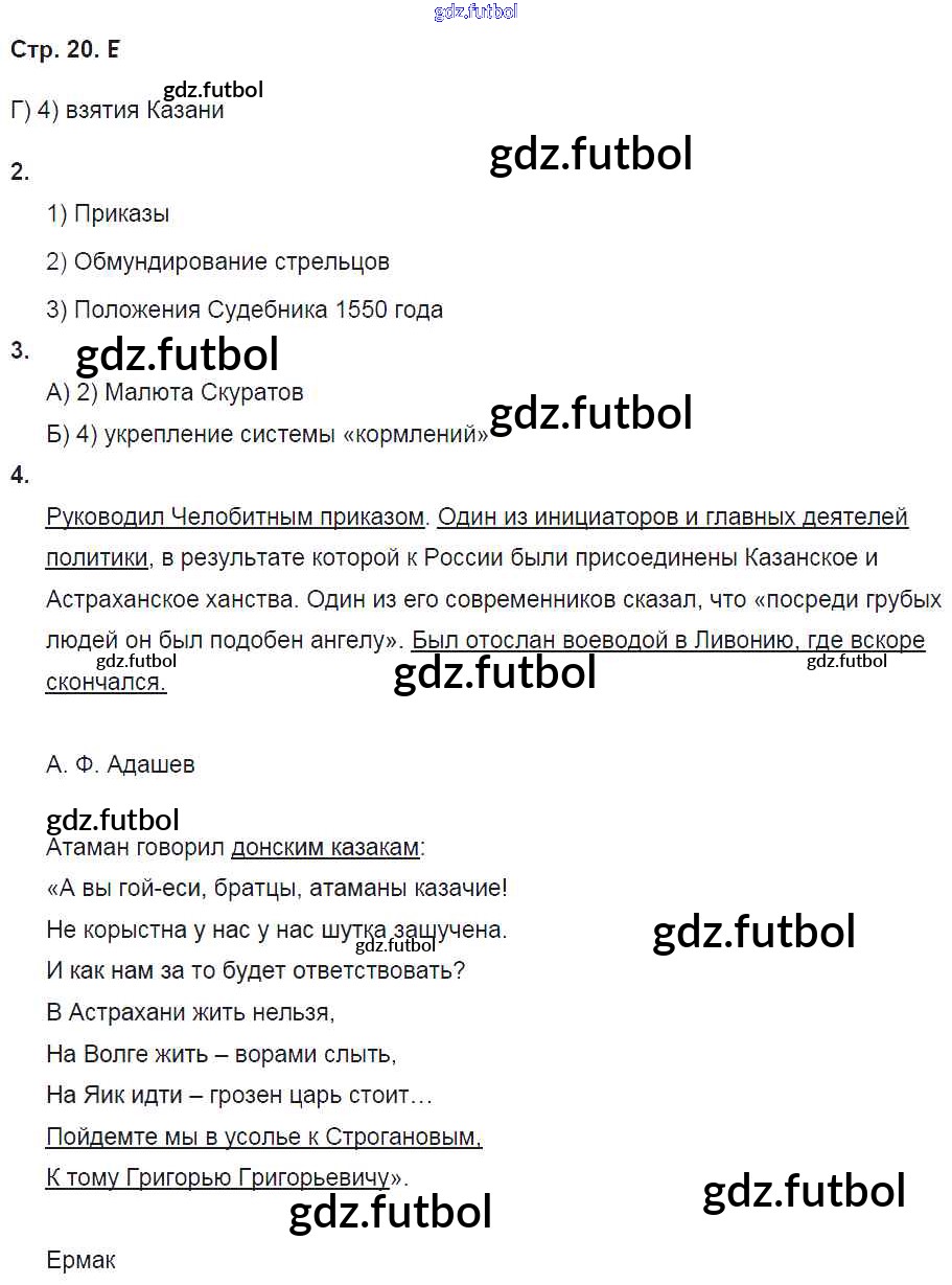 Готовые домашние задания по Истории за 7 класс Баранов Рабочая тетрадь Алгоритм успеха 2017 ФГОС - Страницы 20