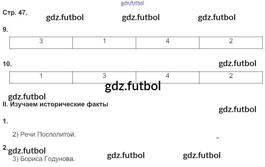 Готовые решения задач (ГДЗ) по Истории седьмой класс Гевуркова Рабочая тетрадь УМК 2018 ФГОС - Страницы 47 доступны для различных учебных материалов. У нас вы сможете найти авторские решения для всех пособий, предназначенных для школьников. Не секрет, что в настоящее время многие школьники прибегают к использованию готовых решебников, ведь они содержат подробные ответы для каждого упражнения, представленного в учебнике.