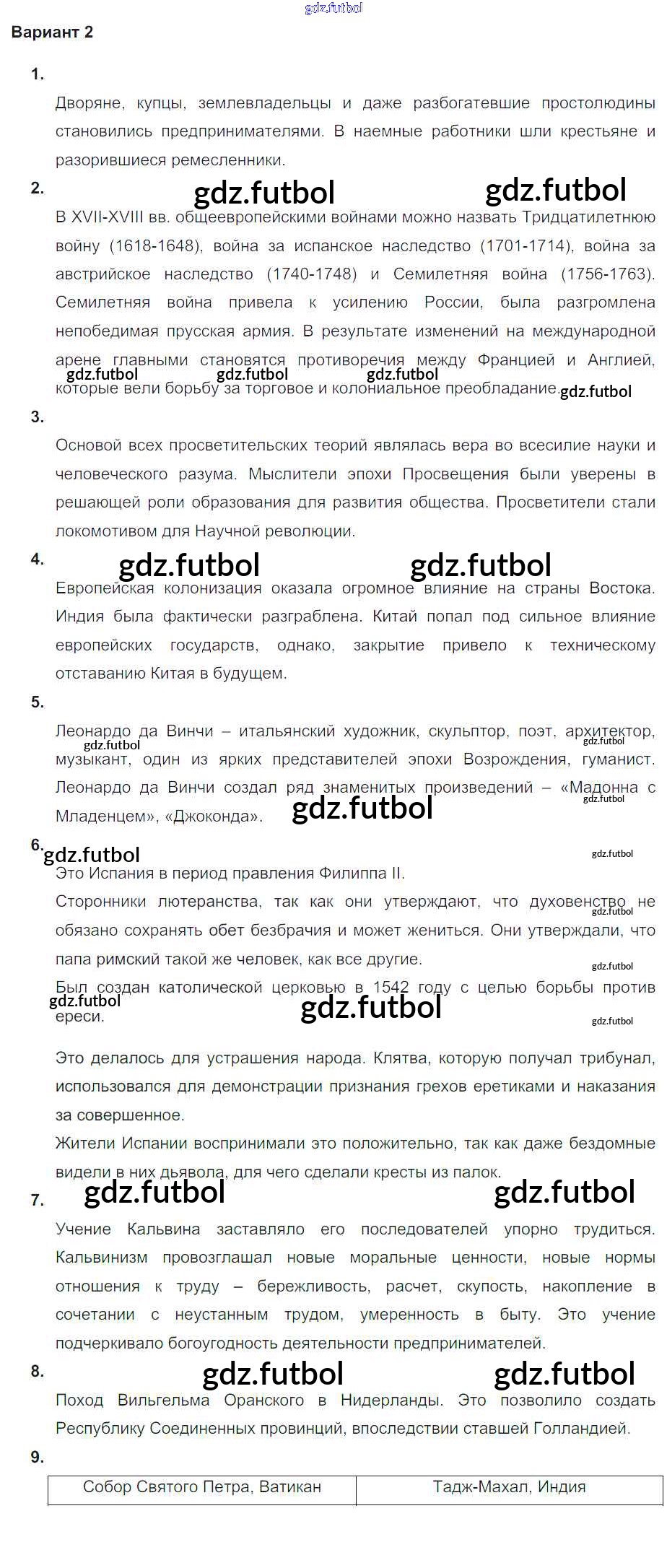 Готовые домашние задания по Истории за 7 класс Уколова Тетрадь-экзаменатор Сферы 2017 ФГОС - Проверочная работа 2 Вариант 2