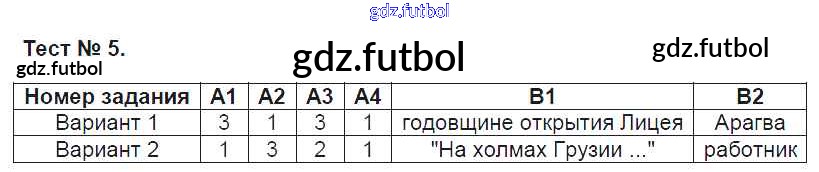 Готовые домашние задания по Литературе за 7 класс Зубова Контрольно-измерительные материалы (КИМ) 2016 ФГОС - Тесты Тест №5