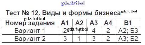Готовые домашние задания по Обществознанию за 7 класс Волкова Контрольно-измерительные материалы (КИМ) 2017 ФГОС - Тесты Тест №12. Виды и формы бизнеса