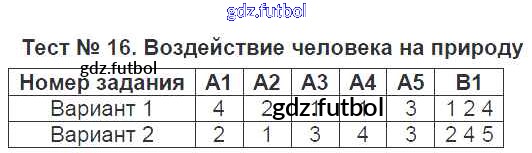 Готовые домашние задания по Обществознанию за 7 класс Волкова Контрольно-измерительные материалы (КИМ) 2017 ФГОС - Тесты Тест №16. Воздействие человека на природу