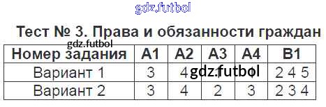 Готовые домашние задания по Обществознанию за 7 класс Волкова Контрольно-измерительные материалы (КИМ) 2017 ФГОС - Тесты Тест №3. Права и обязанности граждан