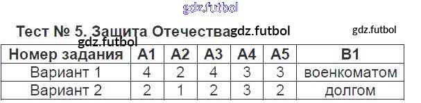 Готовые домашние задания по Обществознанию за 7 класс Волкова Контрольно-измерительные материалы (КИМ) 2017 ФГОС - Тесты Тест №5. Защита Отечества