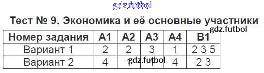 Готовые домашние задания по Обществознанию за 7 класс Волкова Контрольно-измерительные материалы (КИМ) 2017 ФГОС - Тесты Тест №9. Экономика и её основные участники