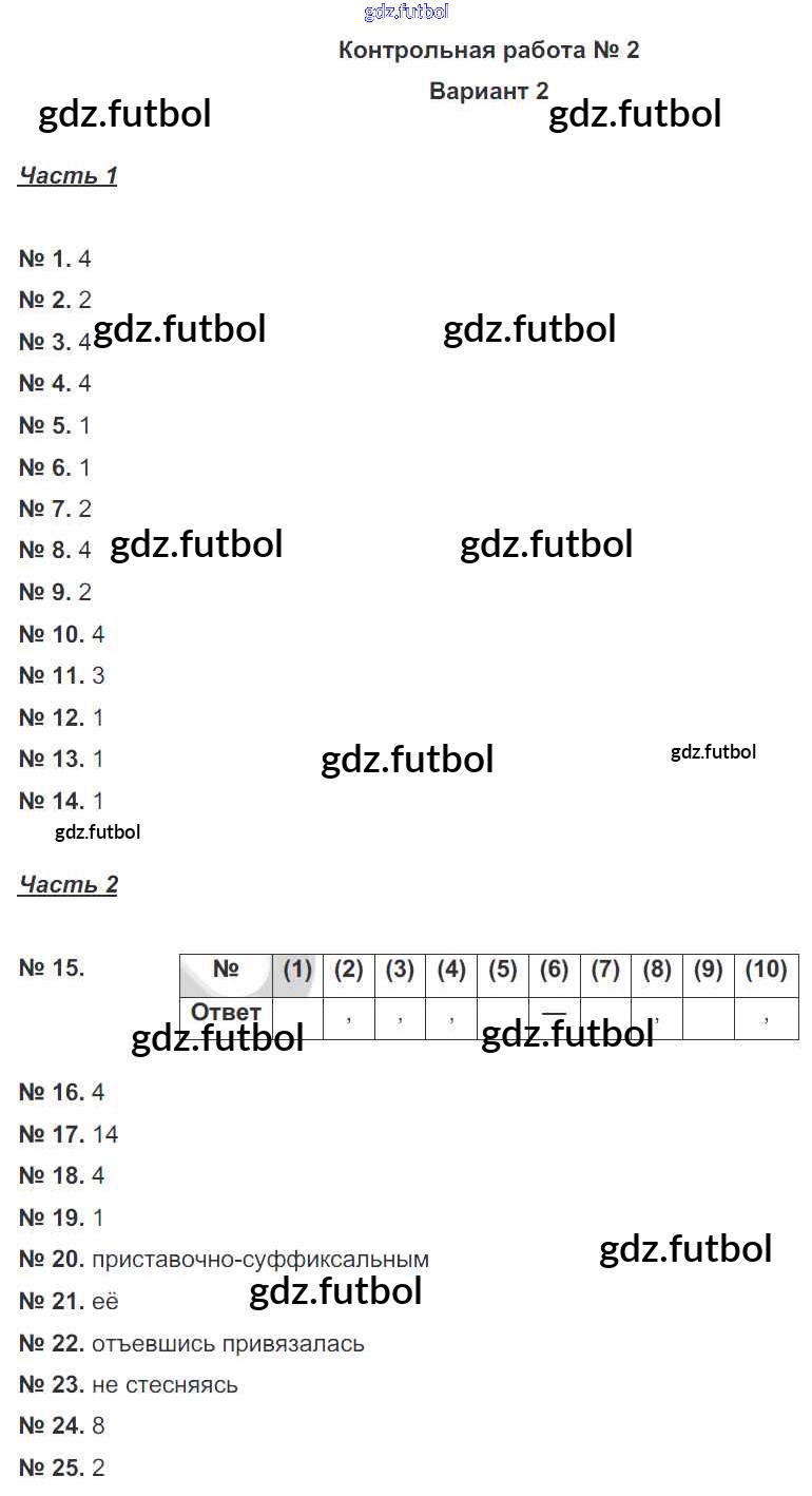 Готовые домашние задания по Русскому языку за 7 класс Александров Рабочая тетрадь 2018 ФГОС - КР-2. Варианты 2