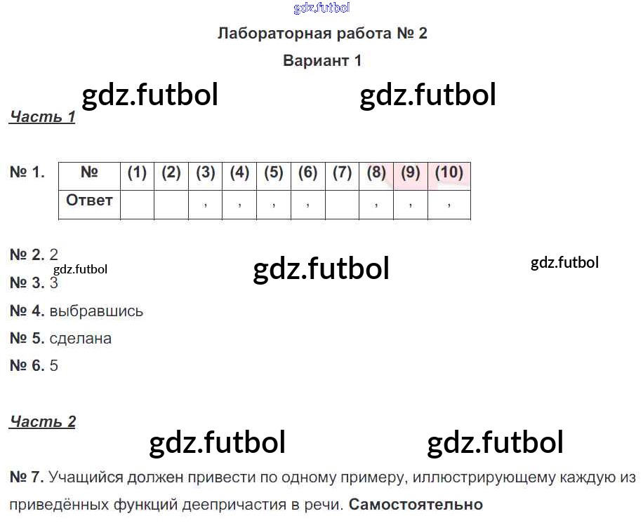Готовые домашние задания по Русскому языку за 7 класс Александров Рабочая тетрадь 2018 ФГОС - Лабораторные работы 2. Варианты 1