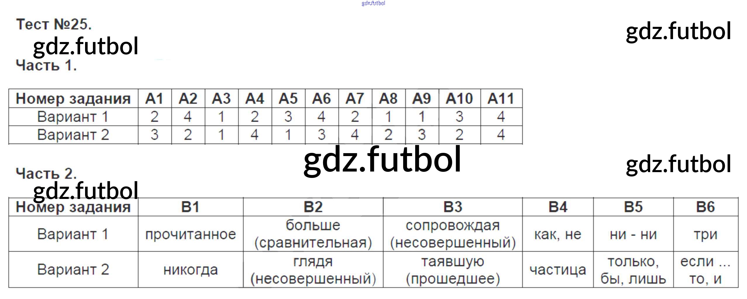 Готовые домашние задания по Русскому языку за 7 класс Егорова Контрольно-измерительные материалы (КИМ) 2017 ФГОС - Тесты 25