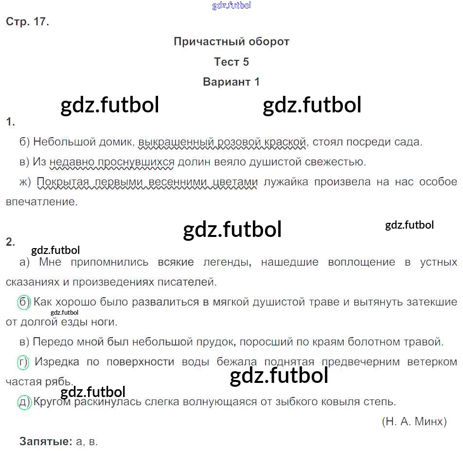 Готовые домашние задания по Русскому языку за 7 класс Книгина Тесты 2012 ФГОС - Часть 1. Страницы 17