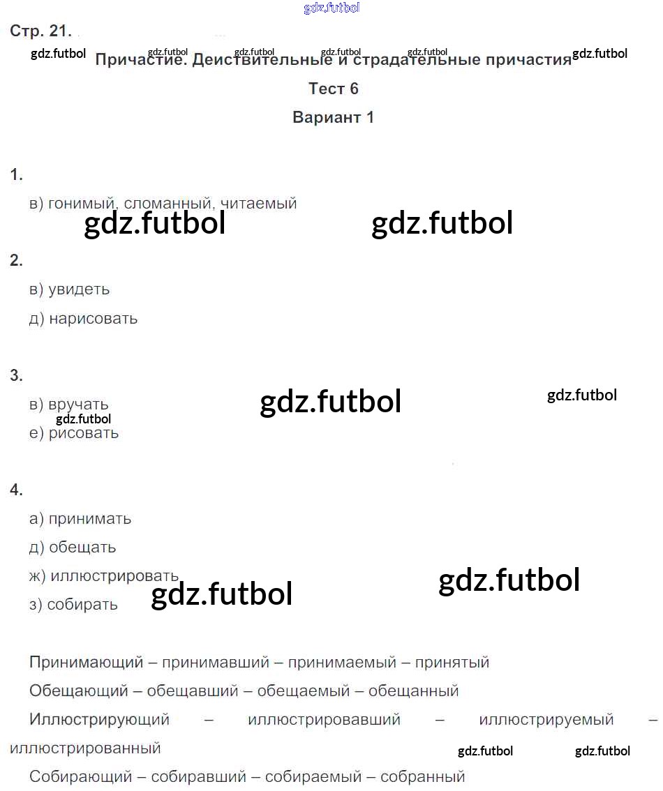 Готовые домашние задания по Русскому языку за 7 класс Книгина Тесты 2012 ФГОС - Часть 1. Страницы 21