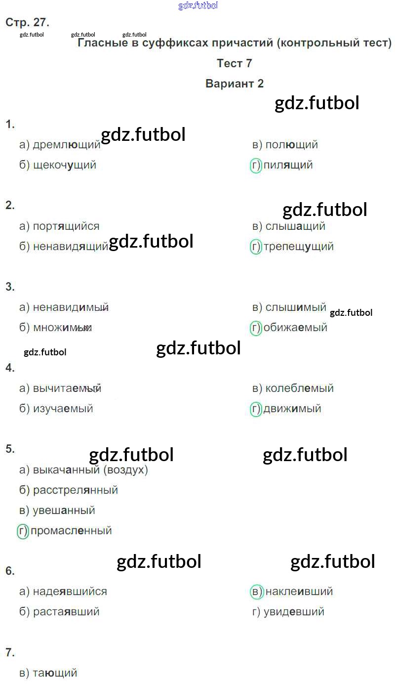 Готовые домашние задания по Русскому языку за 7 класс Книгина Тесты 2012 ФГОС - Часть 1. Страницы 27