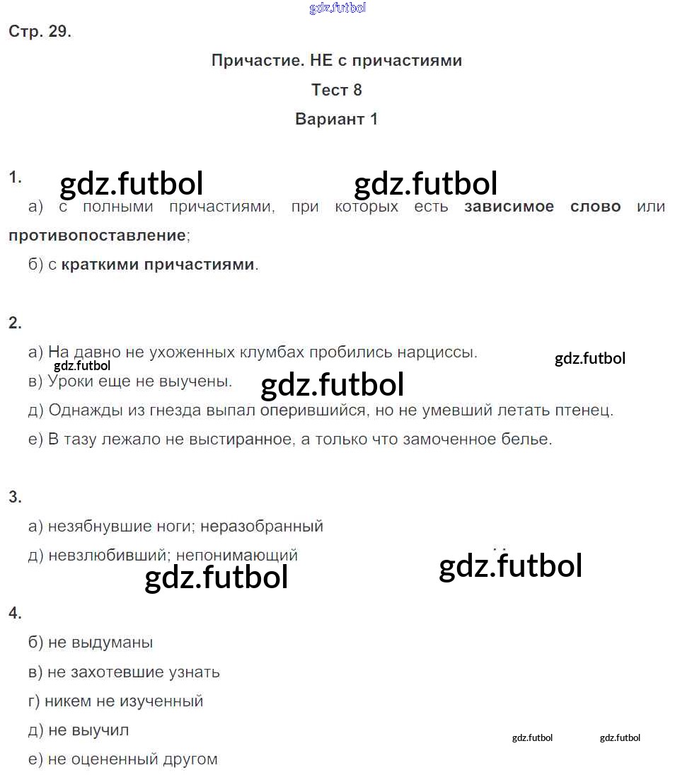 Готовые домашние задания по Русскому языку за 7 класс Книгина Тесты 2012 ФГОС - Часть 1. Страницы 29