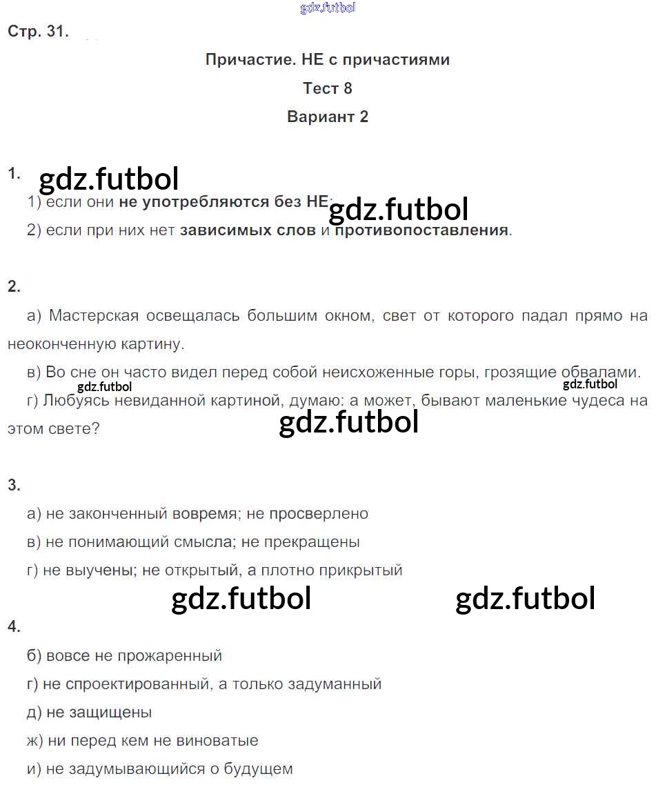 Готовые домашние задания по Русскому языку за 7 класс Книгина Тесты 2012 ФГОС - Часть 1. Страницы 31