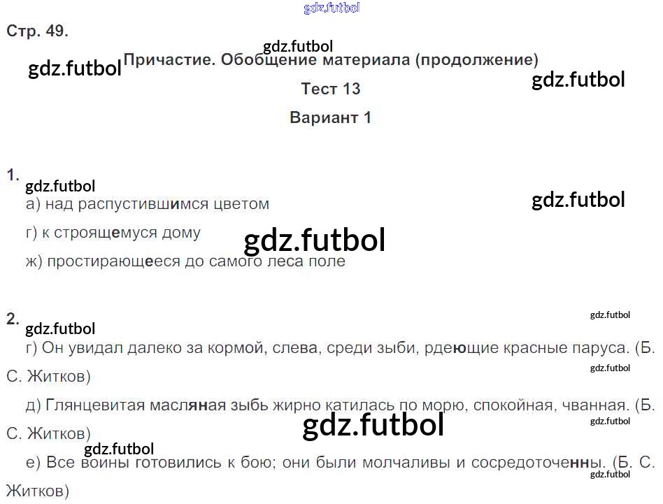 Готовые домашние задания по Русскому языку за 7 класс Книгина Тесты 2012 ФГОС - Часть 1. Страницы 49