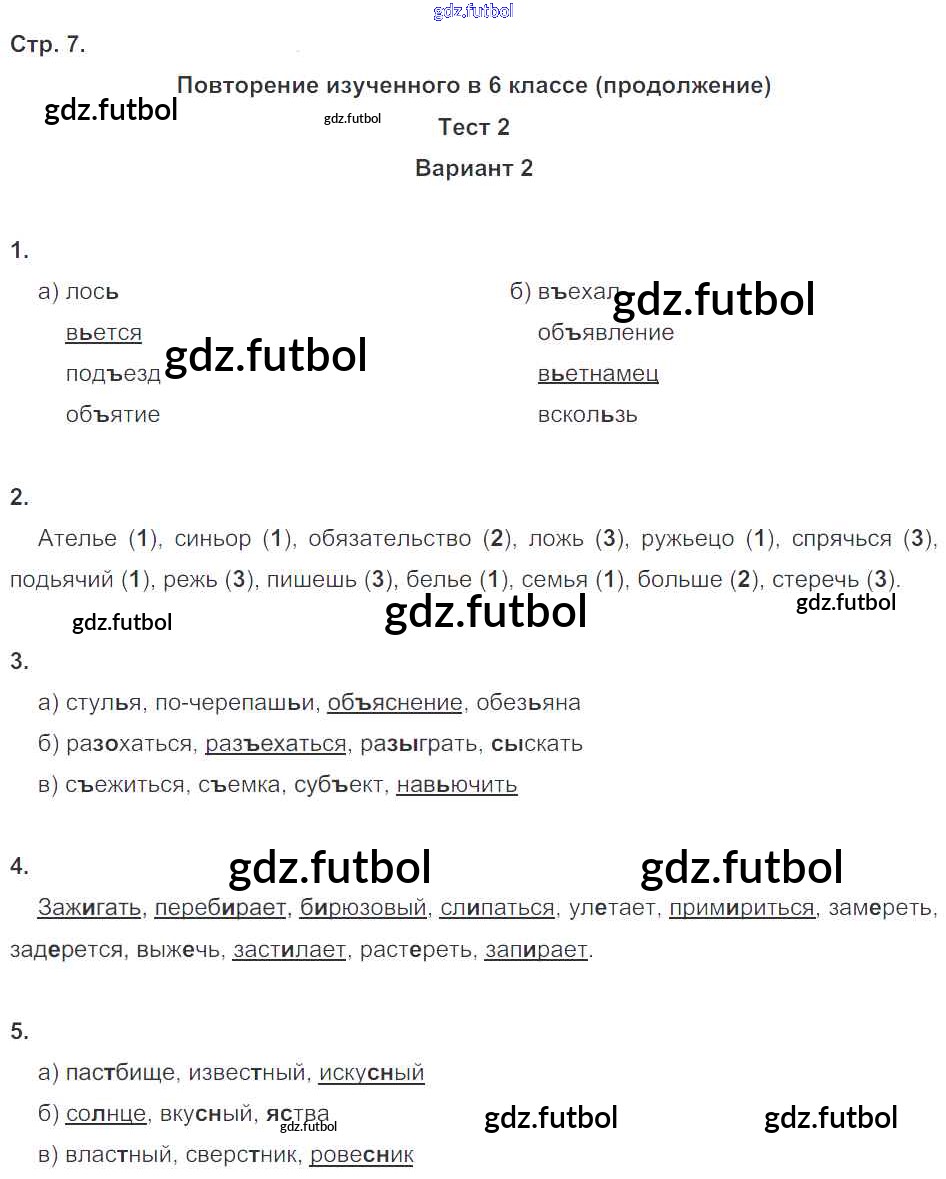 Готовые домашние задания по Русскому языку за 7 класс Книгина Тесты 2012 ФГОС - Часть 1. Страницы 7