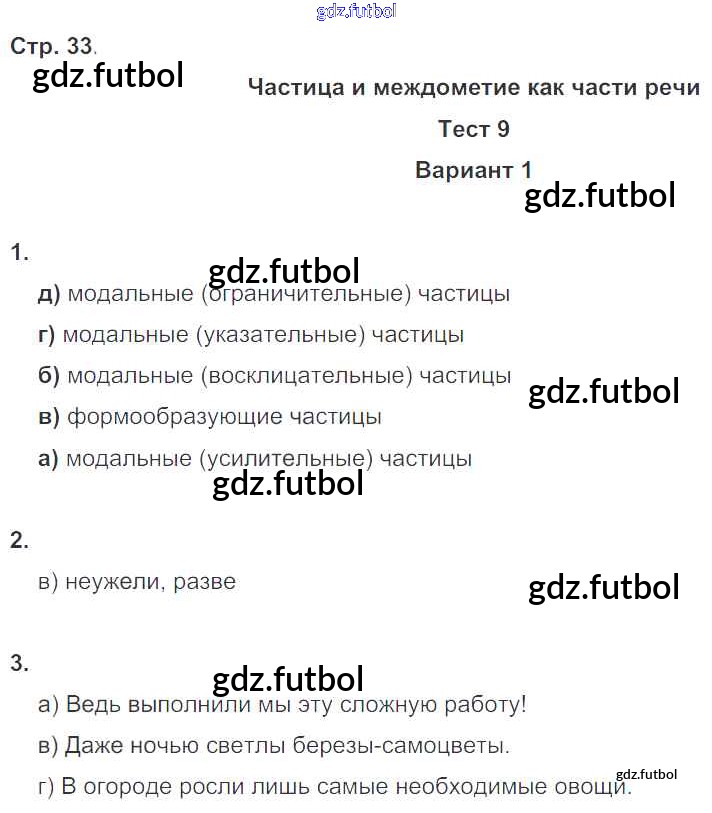 Готовые домашние задания по Русскому языку за 7 класс Книгина Тесты 2012 ФГОС - Часть 2. Страницы 33