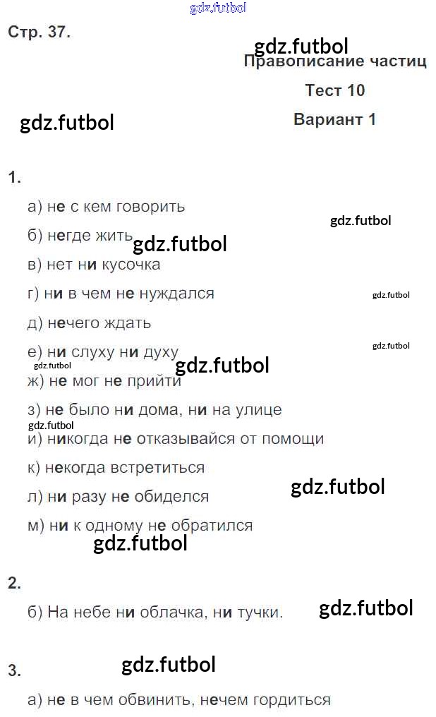 Готовые домашние задания по Русскому языку за 7 класс Книгина Тесты 2012 ФГОС - Часть 2. Страницы 37