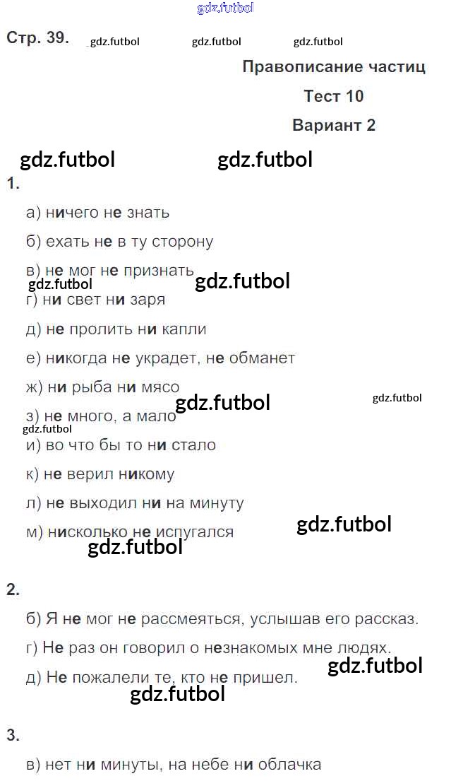 Готовые домашние задания по Русскому языку за 7 класс Книгина Тесты 2012 ФГОС - Часть 2. Страницы 39