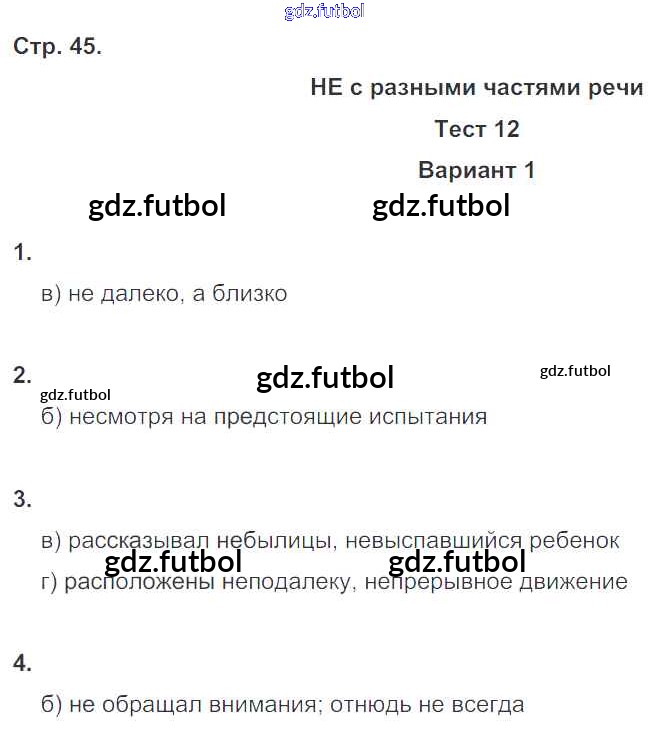 Готовые домашние задания по Русскому языку за 7 класс Книгина Тесты 2012 ФГОС - Часть 2. Страницы 45